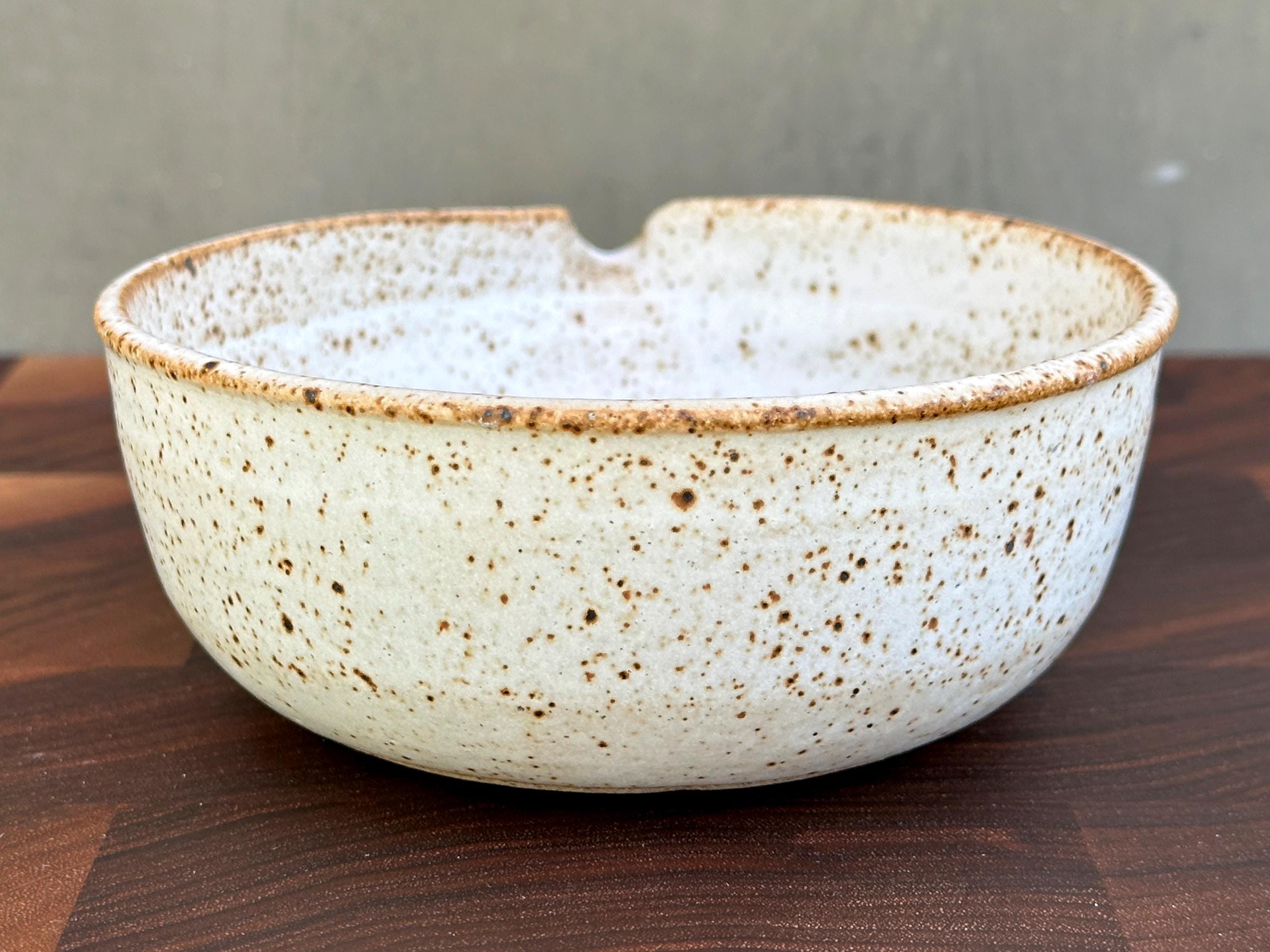 Each piece was handmade and thrown on a pottery wheel, trimmed when leather hard. The piece is then bisque and glaze fired. I make each piece individually and they are signed on the underside/foot with my personal stamp. Food, dishwasher and microwave safe.
